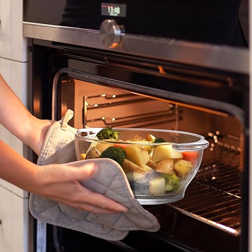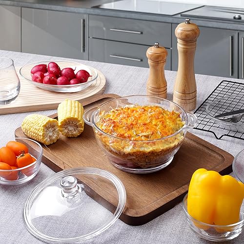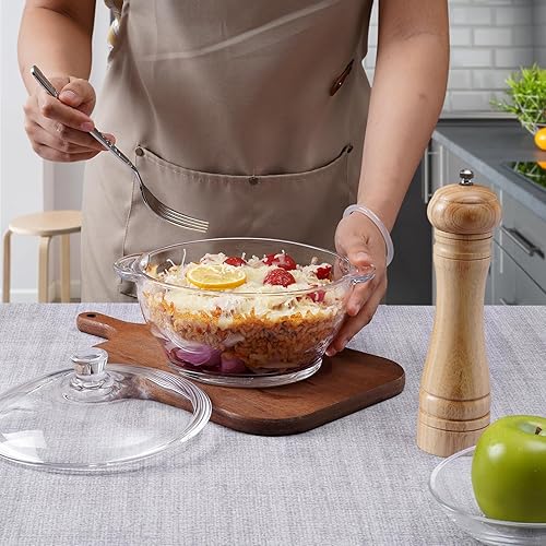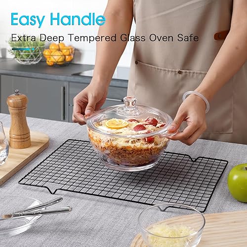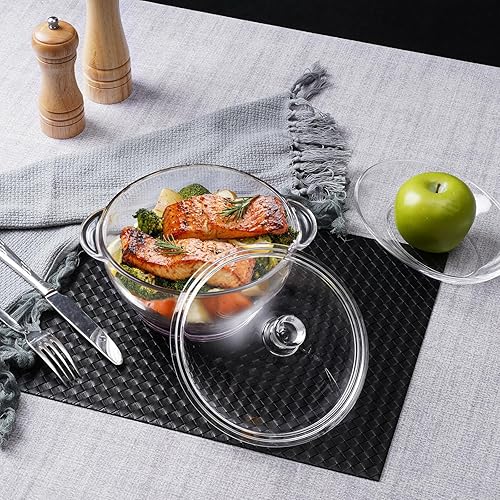 NUTRIUPS Cocotte en verre trempé de 1,5 l avec couvercle, passe au four, plat de cuisson rond de 18 cm (transparent, 1,5 l)