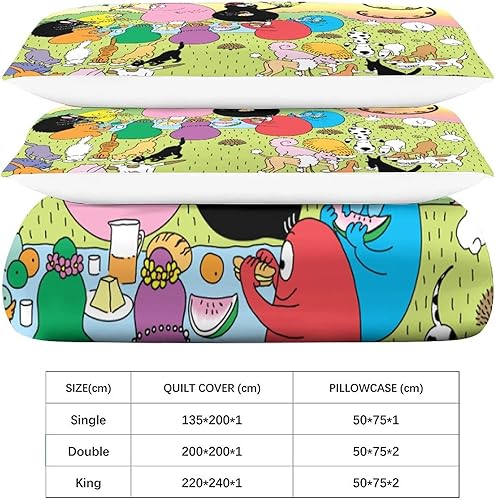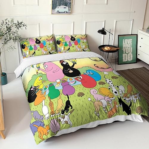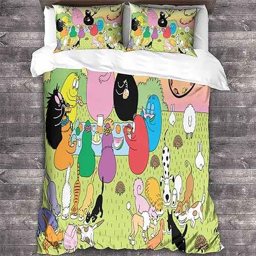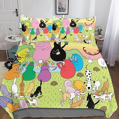 XYueww Parure De Lit Imprimé 3D Les Barbapapa Housse De Couettes, Microfibre Animated Characters Housse De Couette 3 Pièces, avec Taies d'oreiller, pour Adultes Enfants Filles.Double(200x200cm)