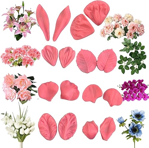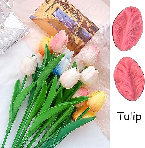 Gumpaste Lot de 8 moules en silicone pour fondant, tulipe, orchidée, pâte à sucre, décoration de gâteaux pour rose, orchidée, tulipe, hibisus, feuille de rose (A)