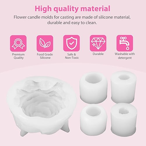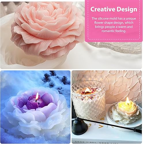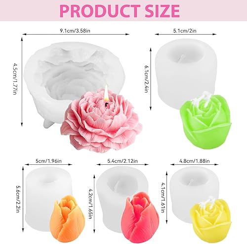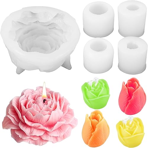 Lot de 5 moules à bougies en silicone 3D - En forme de fleur de pivoine - Rose - En forme de tulipe - Fait à la main - Pour la fête des mères, la Saint-Valentin