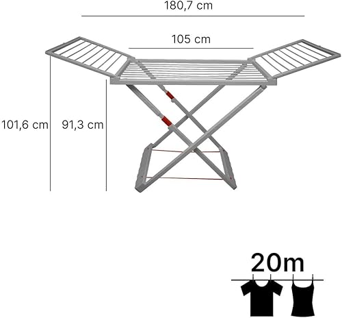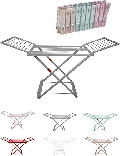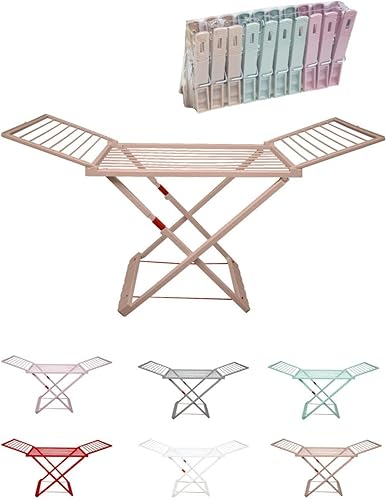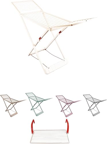 JARDIN202 - Étendoir pliable en résine avec 20 pinces - Étendoir pliable pour balcon pour intérieur et extérieur | Pliable (crème)