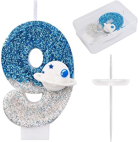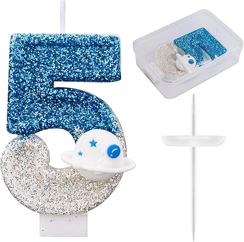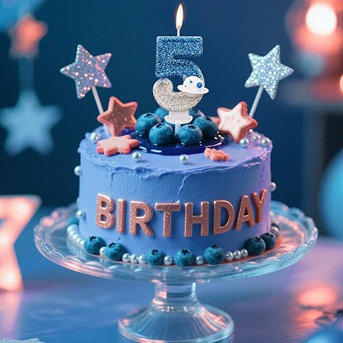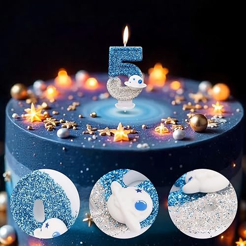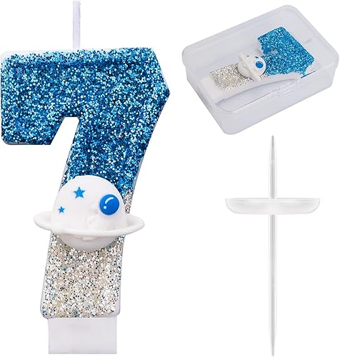 Bougie d'Anniversaire Thème l'Espace, Brillante Numéro Bougies d'Anniversaire d'Astronaute Décoration Gâteau Vaisseau Spatial Décorations Gâteaux et Cadeaux Fête pour l'Univers(Numéro 7)