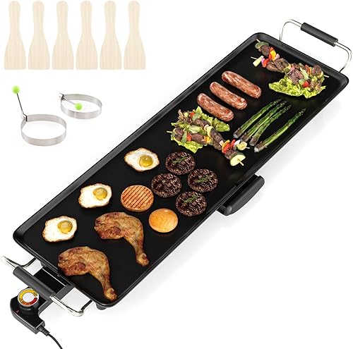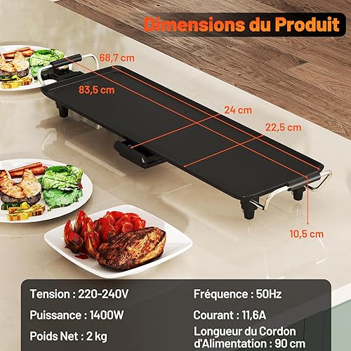 COSTWAY Plancha Électrique XXL 1800W, Barbecue Electrique avec Revêtement Antiadhésif, Thermostat Réglable, Gril de Table Lavable avec Poignée Rembourrée pour 8 Personnes, 90 x 23 cm, Noir