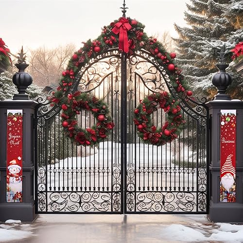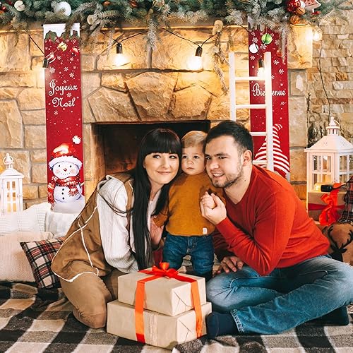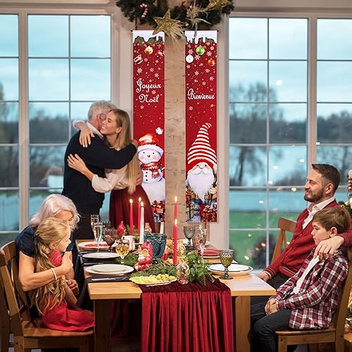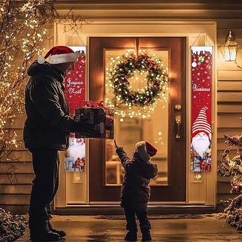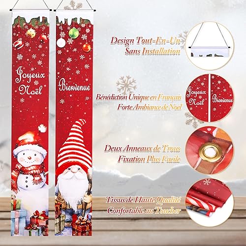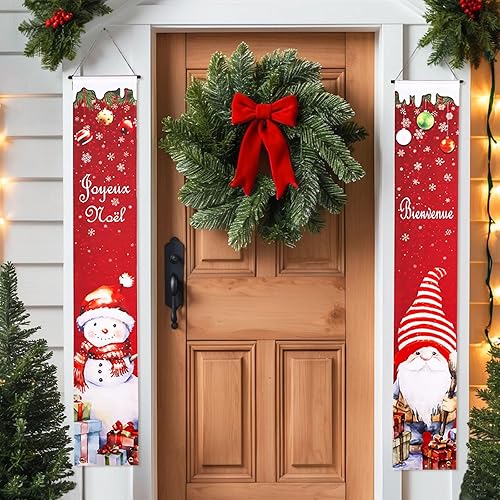 GWHOLE Bannière Noël 2Pcs Banniere Noel Exterieur Banniere de Porte en Français Banderole Noel Decoration Noel Exterieur Bannière Accrochée à la Porte pour Noël