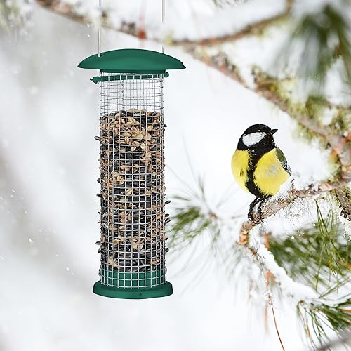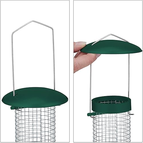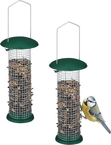 Relaxdays Mangeoire à Oiseaux (Sauvages), Lot de 2, Suspension, en métal, H x D : 31 x 10 cm, Vert et argenté