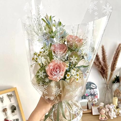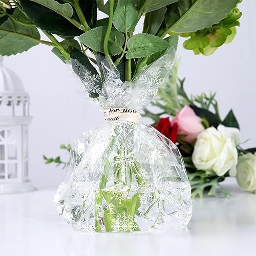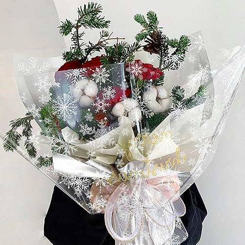 Rouleau de cellophane plié transparent imprimé avec flocon de neige, 80 cm x 30 m pour paniers, anniversaire, fête des mères, biscuits, cadeaux de Pâques