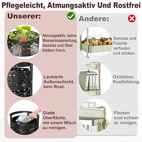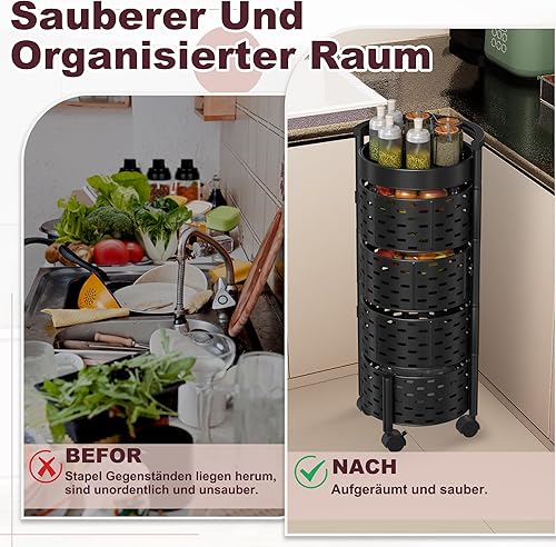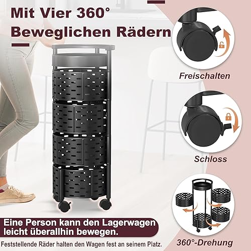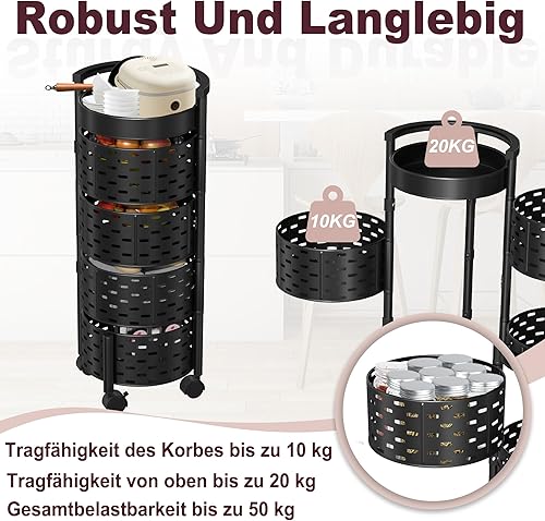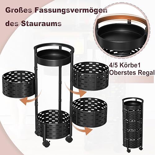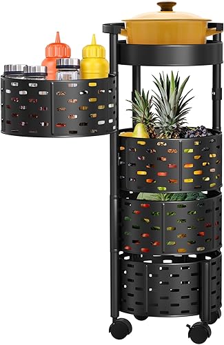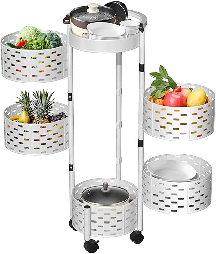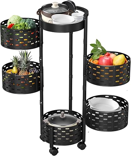 VANCHEMO Étagère de rangement rotative avec roues 5 niveaux - Étagère de cuisine rotative multicouche - Chariot de rangement pour fruits et légumes - Chariot de rangement pour cuisine, salle de bain