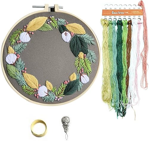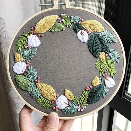 DOITEM Kit de Broderie pour Débutant, Kit D'outils de Broderie Rond Réglable, Kit de Démarrage Avec Cerceau à Broder, Fil à Broder, Tissu à Broder Avec Modèles de Motifs, pour Bricolage
