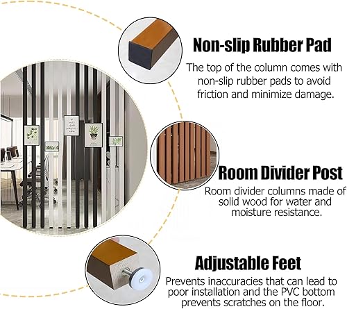 Paravent Interieur Home Privacy Screens Partition Post, Colonne de séparation en bois massif for hôtel et bureau/ Séparateur d'espace polyvalent, Tige de séparation de pièce facile à installer(2pcs,70