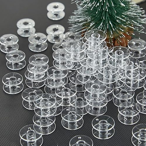 DAZZLUXE Lot de 40 bobines transparentes pour machine à coudre, noyaux de fermeture de bobines en plastique, bobines universelles multifonctionnelles, convient pour les machines à coudre