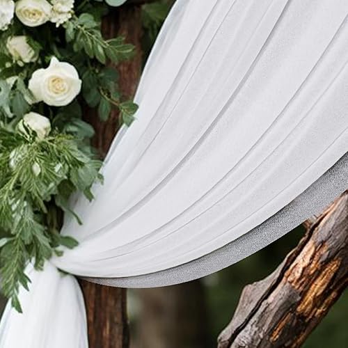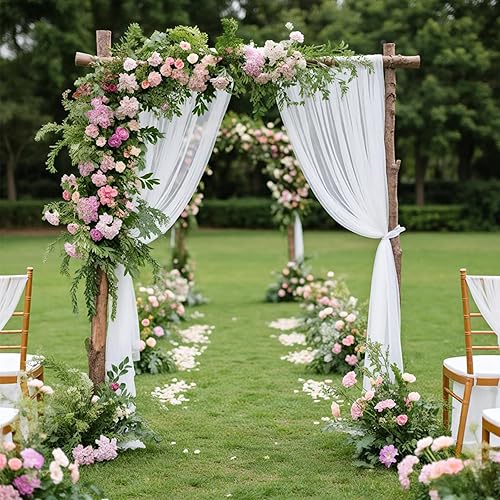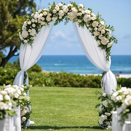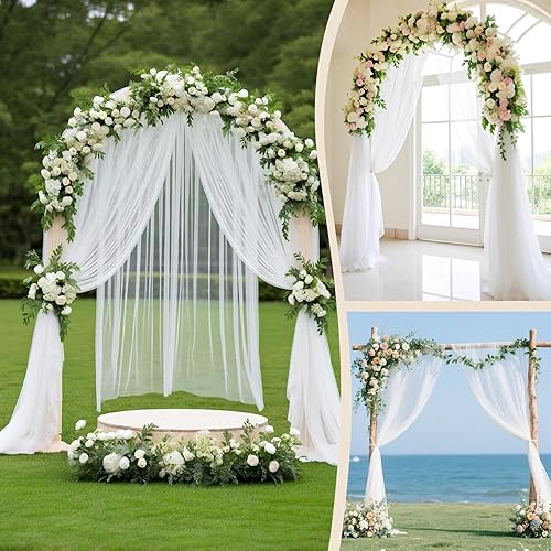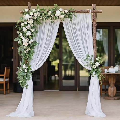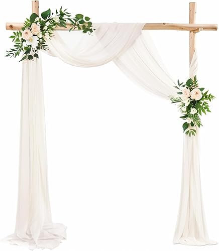 LUKDUNG Rideau en mousseline de soie - 75 cm x 600 cm - Décoration pour mariage, photographie, fête, arche de cérémonie, blanc ivoire