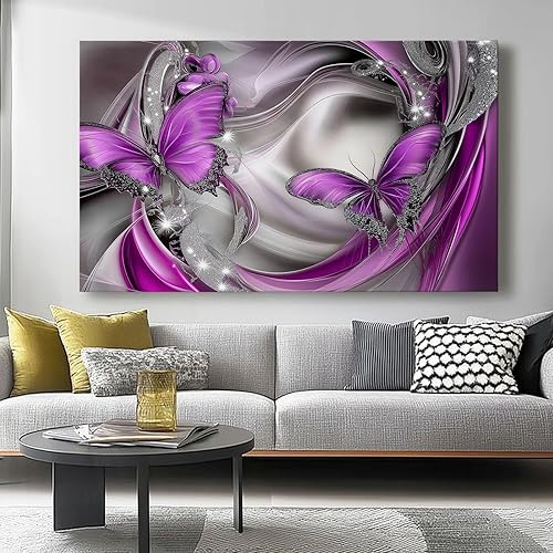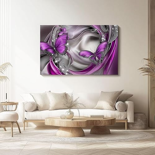 Impression sur toile 120L x50l cm decoration chambre -tableau decoration murale Papillon Abstrait Magnifique decoration maison - Tableau Moderne - toile peinture Argent violet