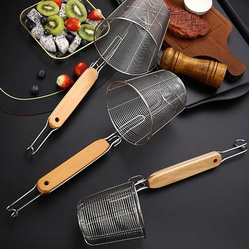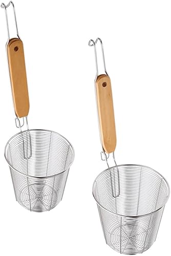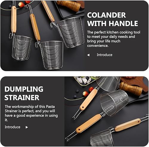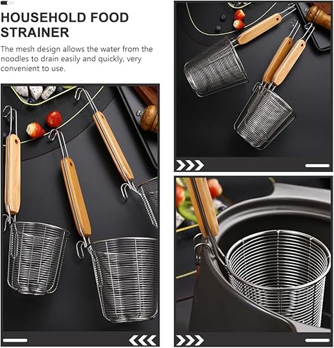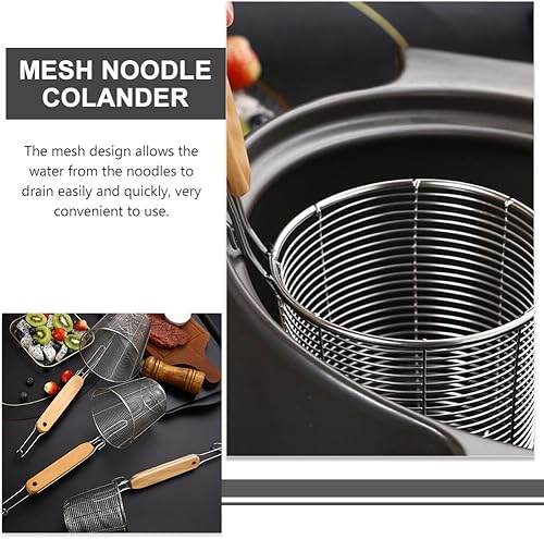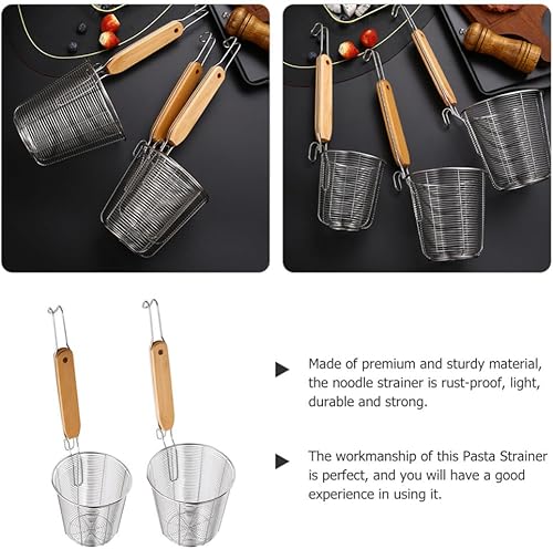 Hotpot Lot de 2 passoires à pâtes avec poignée en bois en acier inoxydable - Passoire à blanchiment pour pâtes, spaghetti, boulettes, ramen