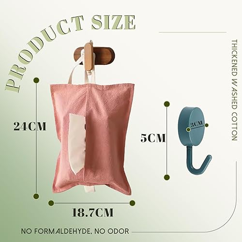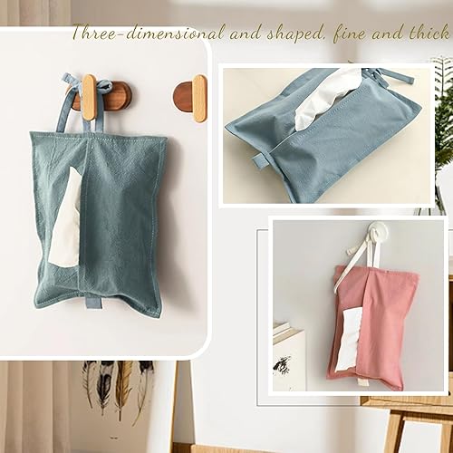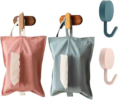KASESSS 2 Pièces Boite a Mouchoir en Coton, Suspendue Boite Mouchoirs, Boite Mouchoir avec Deux Crochet Adhesif Mural, Distributeurs de Mouchoirs pour Cuisine, Chambre, Toilette, Voiture, Bleu, Rose