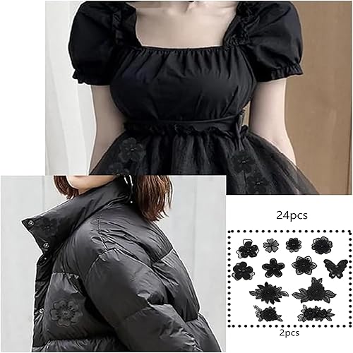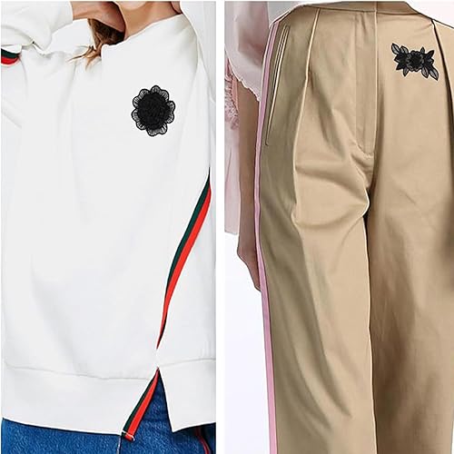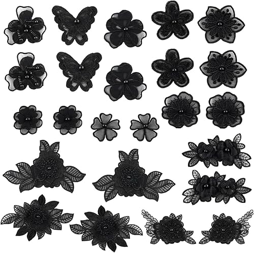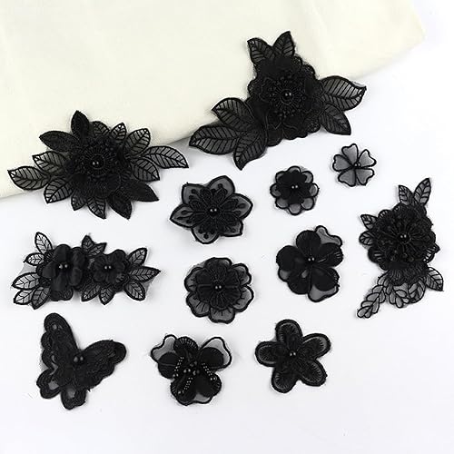 Belvanr Brodé de Dentelle Fleur 24 Pièces Appliques de Dentelle d'organza Noir Brodé de Dentelle Patchs de Dentelle pour Vêtements Garnitures Patch Brodé Fleur on Patchs Correctifs de Coudre