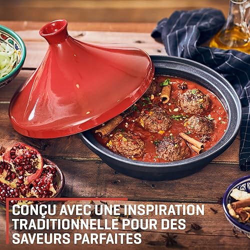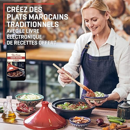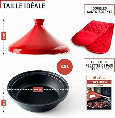 Uno Casa Plat à Tajine Marocain - Tajine Induction - Casserole en Fonte de 3,5 l avec une Base en Fonte Émaillée et un Couvercle en Forme de Cône