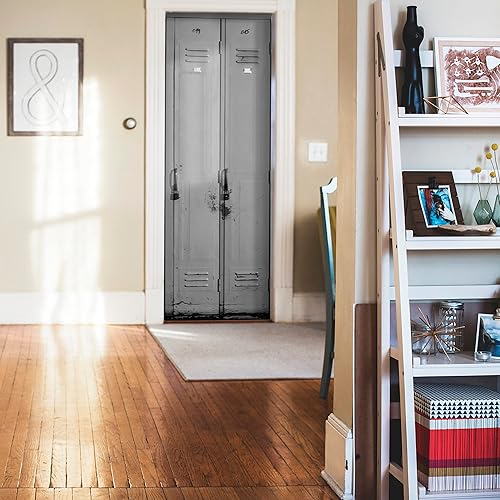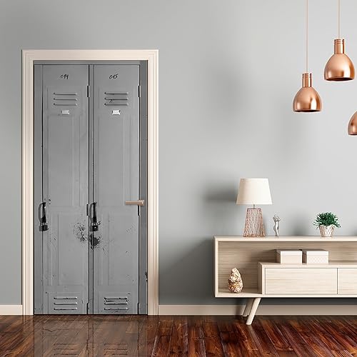 PLAGE Sticker Porte, Trompe l'oeil Armoire Industrielle métallique Gris Aspect Vieilli, 204 cm X 73 cm