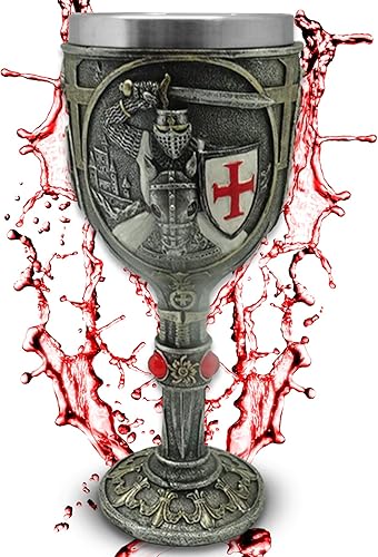 Calice ''Riding Templar Knight'' - Calice décoré de croisé (160ml) - avec ornements - Hauteur 18 cm - Décoration médiévale fantastique