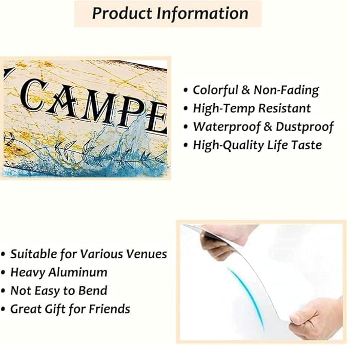 Plaque murale vintage Happy Camper - Plaque de rue en métal - 40,6 x 10,2 cm