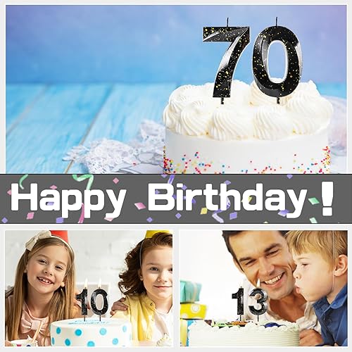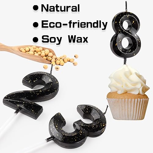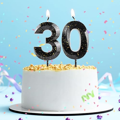 Bougies en forme de chiffre 10 pour 10e anniversaire - Bougie 3D noire et dorée - Cire de qualité supérieure et diamant 3D - Décoration de gâteau pour fête d'anniversaire, anniversaire de mariage