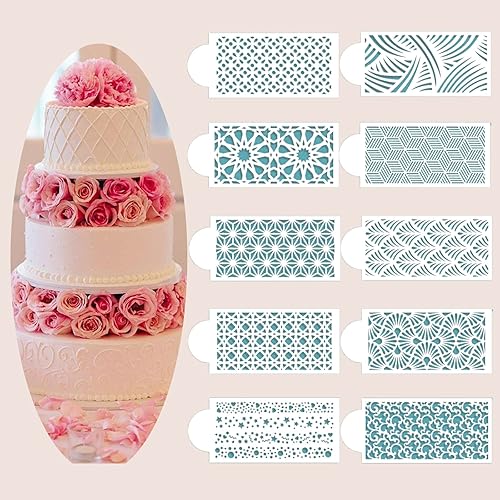 Ruikdly 10 Pièces Pochoir Patisserie Gâteau DIY Pochoirs de Cuisson en Plastique Pochoir Patisserie Reutilisable Motifs Floraux en Pochoir Gâteau pour Anniversaire
