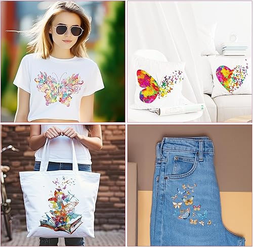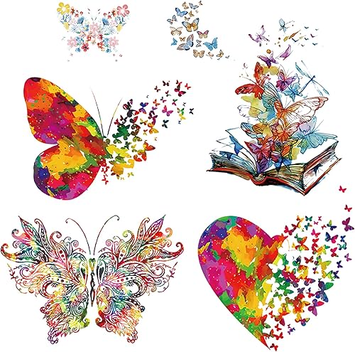 Lot de 6 écussons thermocollants en forme de papillon colorés en PET - À repasser - Pour vêtements, robes, pantalons, jeans, chapeaux, sacs