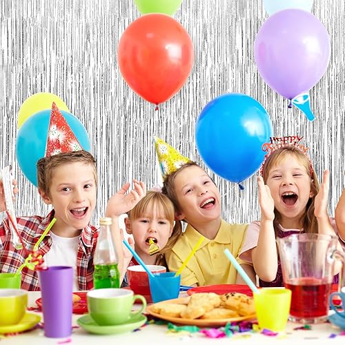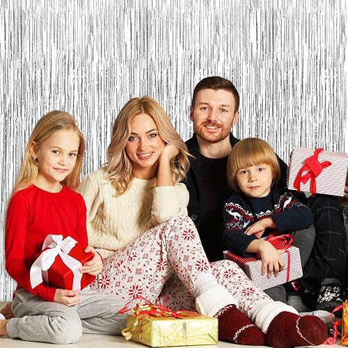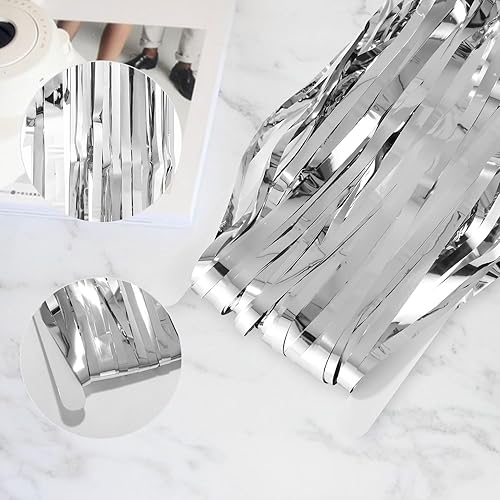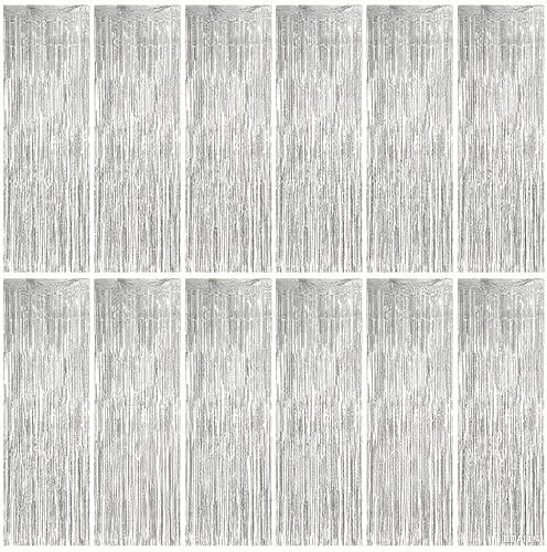 Ixydor 12 Pièces Argent Rideau Métallique de Frange, Rideau Anniversaire Argenté, Rideaux à Franges, Paillette Rideau Frange pour Photographie La Fête Mariage Noël Halloween Party, 1m * 2m
