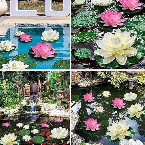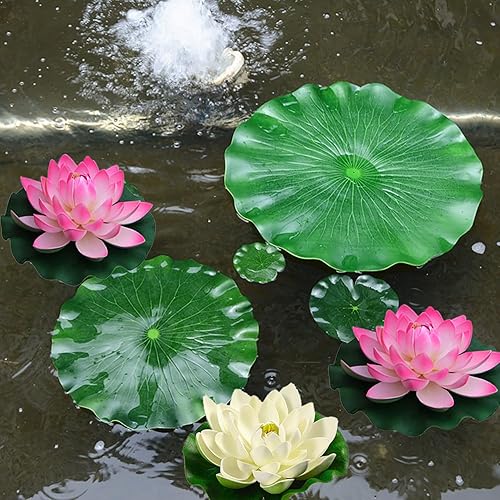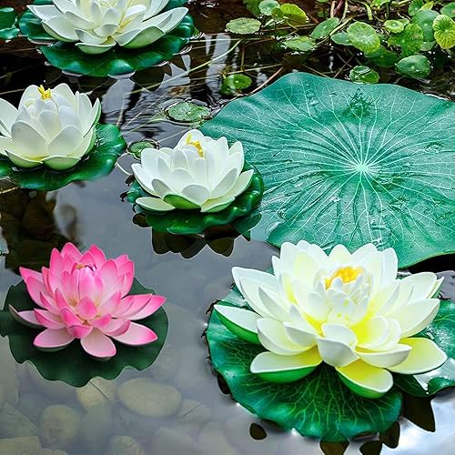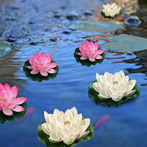 Lot de 6 Fleurs de Lotus Artificielles Flottantes Plantes Artificielles de Lotus pour Étang Nenuphar Flottant Fleurs Artificielles Nenuphar pour Bassin Plante Plantes D'étang Flottantes Jardin étang