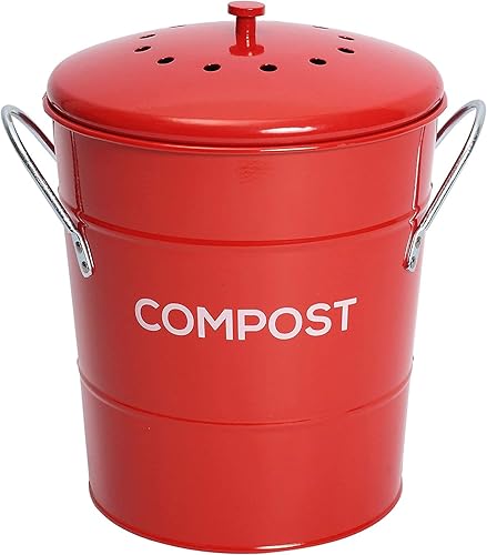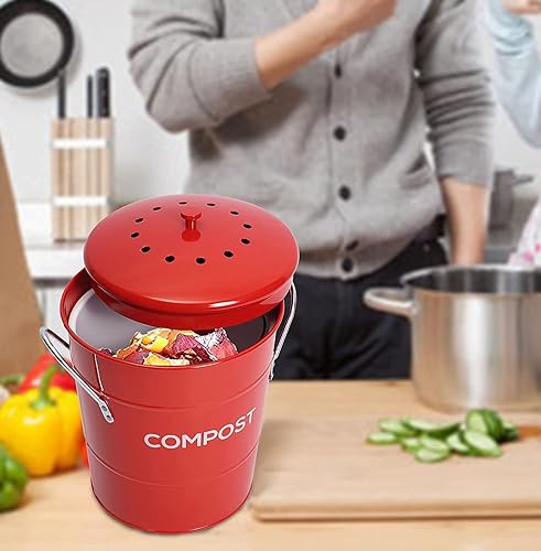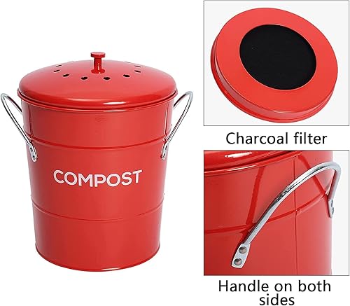 ayacatz 2-en-1 Métal Poubelle Compost Cuisine 3L, Seau à Compost avec Couvercle et Filtre à Charbon, Seau Amovible à l'intérieur, Composteur avec poignées-Rouge
