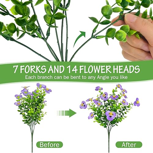 YMIFEEY 6pcs Fleurs Artificielles Extérieures Resistant aux UV Balcon Fleur Artificielle Réalistes Fausse Plante Exterieur Interieur Arbuste Bouquet Artificiel Deco pour Jardin Maison Mariage Table