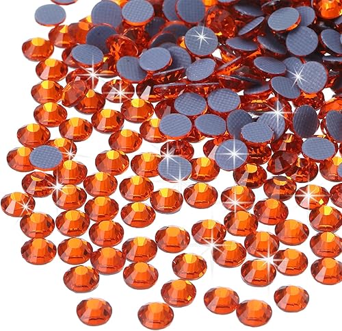 QUARKZMAN 1440 Pcs Strass À Fixation Thermique Strass À Dos Plat Cristal Verre Pour Artisanat Vêtements DIY Décoration(SS12 3.2mm,Orange)