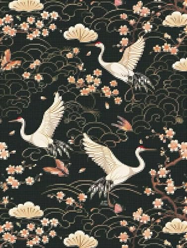 5D Diamond Painting Adulte Kit Complet Grue,Ronde Droderie Diamant,DIY Diamond Painting Lmages Oiseaux,Diamant Peinture Adultes,Cristal Débutant Art Set pour Décoration Murale Maison 30x40 cm J-Q