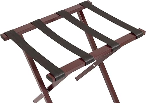 Mabel Home Porte-bagages pliable en métal avec sangles en nylon, 5 modèles et 3 couleurs, pour hôtel, chambre, chambre d'amis, placard (400 bordeaux)