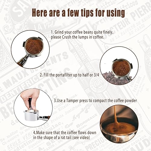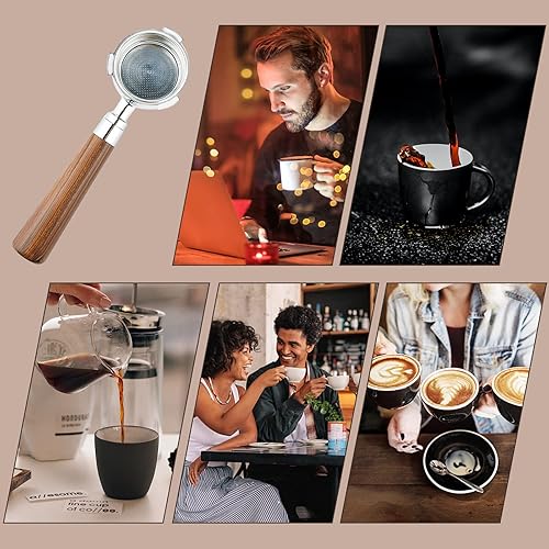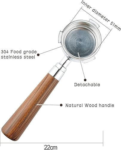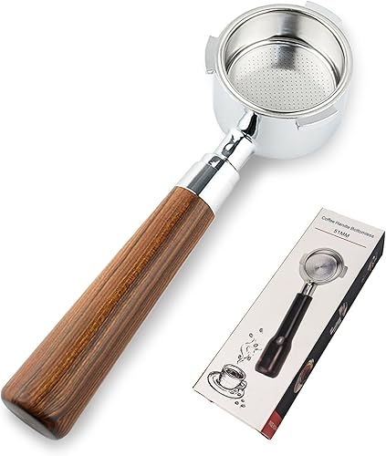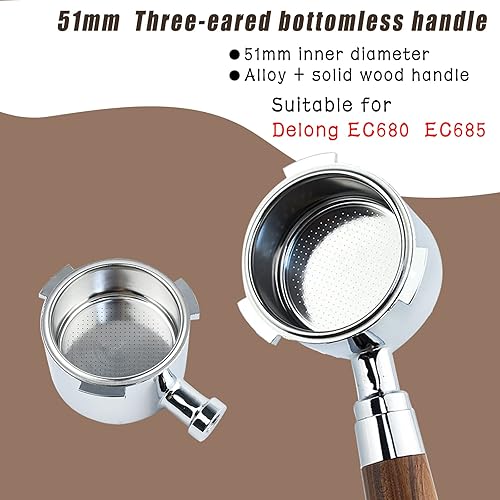 AolKee Porte-filtre réutilisable sans fond de 51 mm, poignée à trois oreilles de 51 mm avec filtre à expresso en acier inoxydable, poignée en bois massif, compatible avec Delonghi EC680 EC685