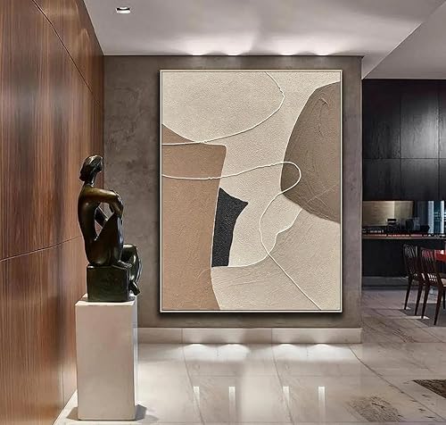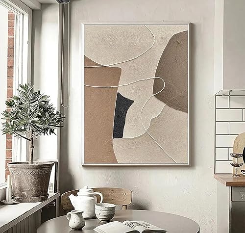 ZHAOLIN Peinture à l'huile abstraite sur toile beige et marron Wabi Sabi, décoration murale neutre, grande taille, style bohème, texturé, décoration d'entrée, pour la maison, 80 x 120 cm, sans cadre