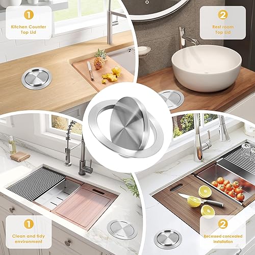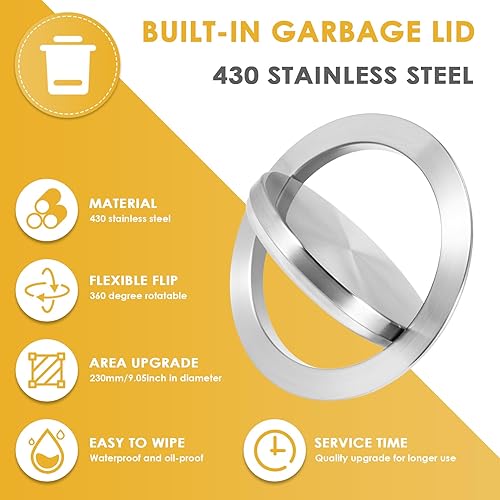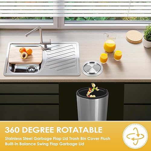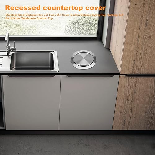 Kissmii Couvercle à rabat en acier inoxydable pour seau à céréales - Balançoire intégrée - Couvercle pour le plan de travail de cuisine D.