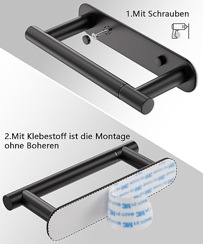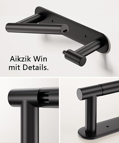 Aikzik Porte-rouleau de papier toilette avec 2 méthodes de montage - Sans perçage - Support mural pour papier toilette - En acier inoxydable - Pour cuisine et salle de bain - Noir