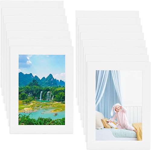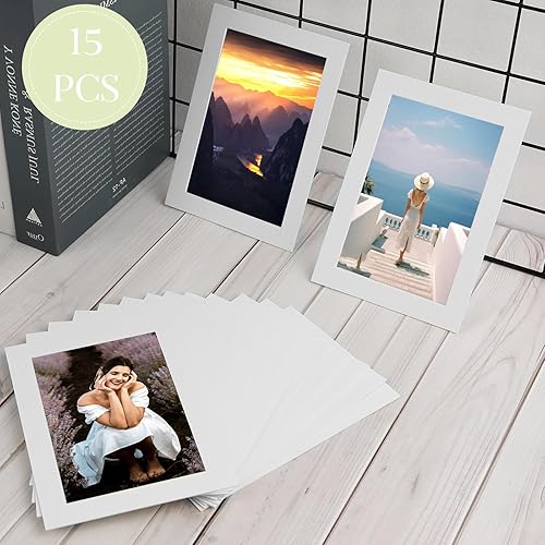 Lot de 15 passe-partout prédécoupés blancs de 12,7 x 17,8 cm, passe-partout blancs pour photos de 10,2 x 15,2 cm