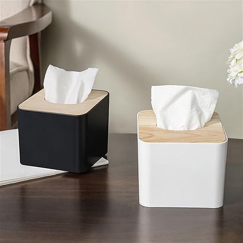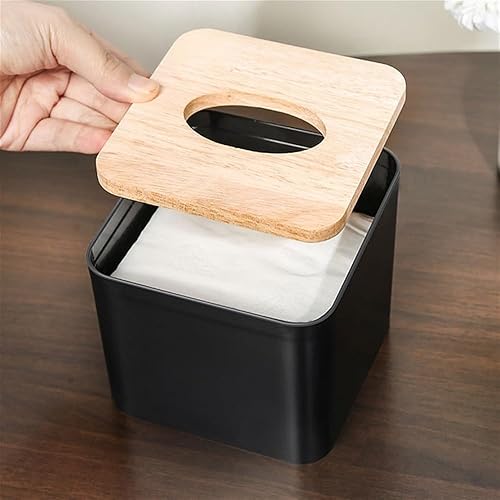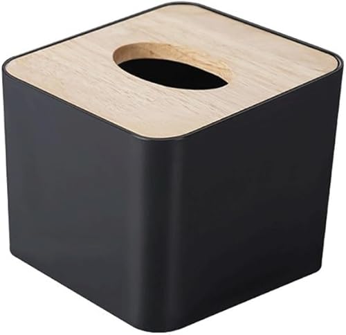lskdnrufh Boîte à mouchoirs carrée en bois noir avec porte-serviettes de cuisine, boîte de rangement pour la maison (noir)