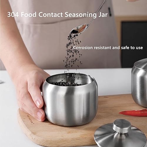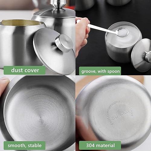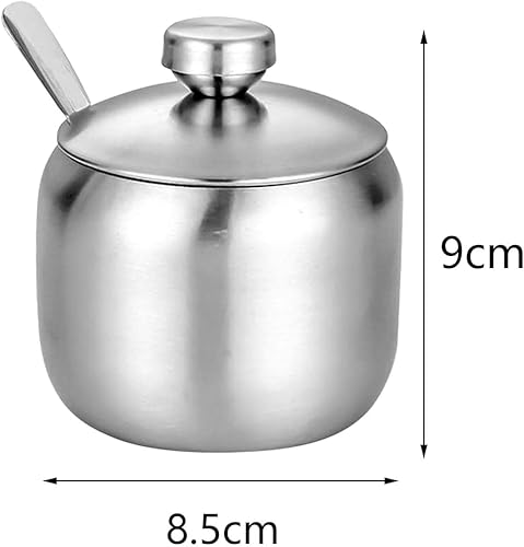 Pot à Sucre en Acier Inoxydable avec Couvercle Bol à Sucre avec Couvercle et Cuillère à Sucre Sucrier Inox avec Couvercle et Cuillère Pot à épices Rond en Acier Inoxydable pour Sucre, thé, Café,épices