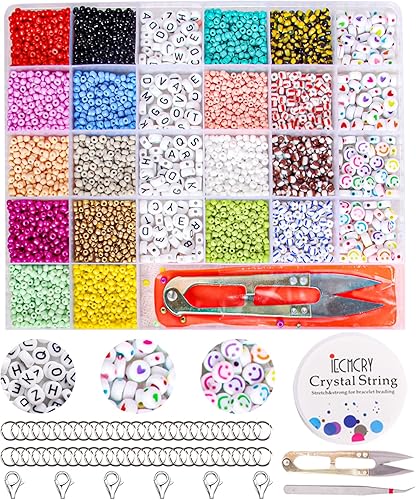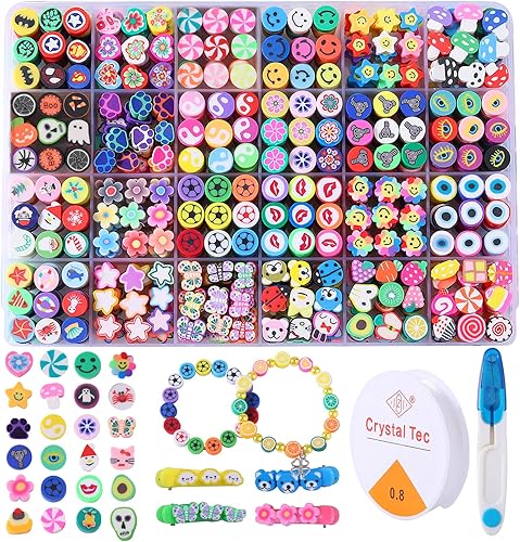 480pcs Perles Plates pour Bijoux, 24 Couleurs Smiley, Fruits, Fleurs Polymère, Kit de Fabrication pour Collier et Bracelet - Adultes et Enfants