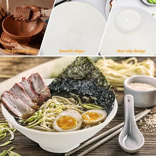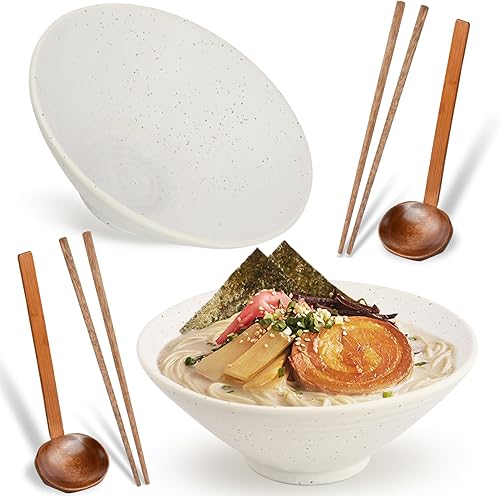 Mapille Lot de 2 Bols à Ramen en Céramique, Vaisselle Japonais Saladier 1000ml avec Baguettes et Cuillères pour Nouille, Salade, Soupe Pho, Udon, Compatible Lave-vaisselle et Micro-ondes