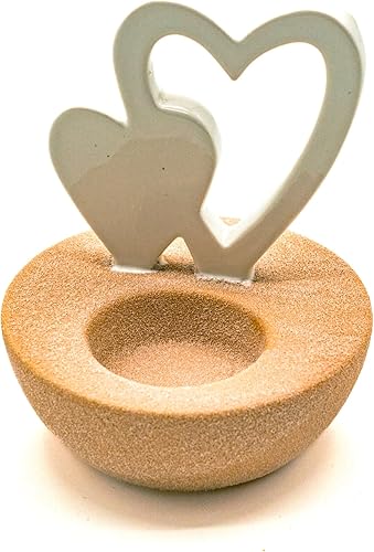 LivuX Photophore double cœur en porcelaine blanche 11,7 cm de haut, 9,7 cm de diamètre – Élégant bougeoir en forme de cœur 1113