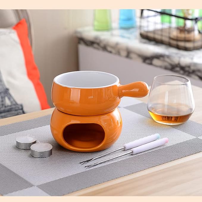 EdirFtra Mini pot à fondue au chocolat en céramique - 300 ml - Avec 2 fourchettes - Pot à fondue au chocolat - A