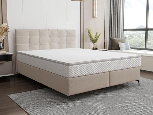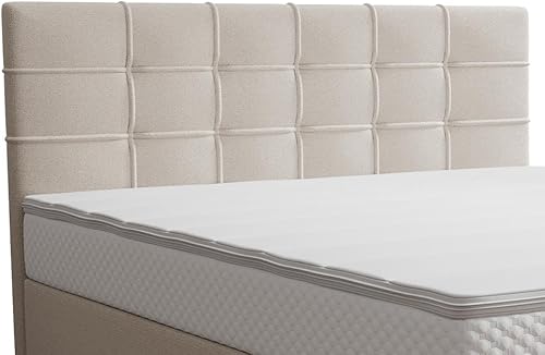 Vente-unique - Ensemble Complet boxspring tête de lit capitonnée + sommier + Matelas + surmatelas - 160 x 200 cm - Tissu - Beige - INAO de YSMÉE