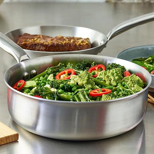 De Buyer - Sauteuse à bords droits en inox 3 couches ALCHIMY - 28 cm - Fabriquée en France, Sans PFAS, Maîtrise de la Cuisson, Inox 18/10, Tous Feux + Four, Finition Poli Brossé