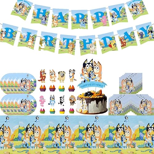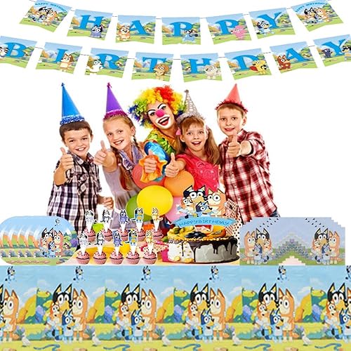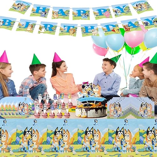 Ensemble de fête d'anniversaire pour enfants, drapeaux, ensembles de vaisselle, serviettes assorties, nappe festive et accessoires de gâteau. Parfait pour les célébrations avec 20 invités, idéal pour