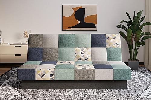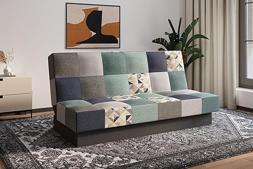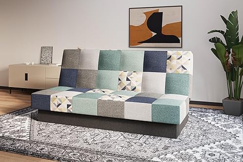 mb-moebel Canapé Convertible 3 Places avec Coffre – Clic-Clac avec Rangement | Banquette Lit BZ 2 Places – Sofa Bed en Tissu – Cyprus Patchwork (Bordeaux + Jaune)