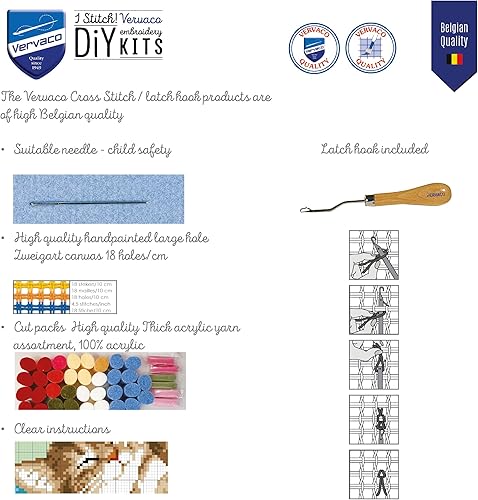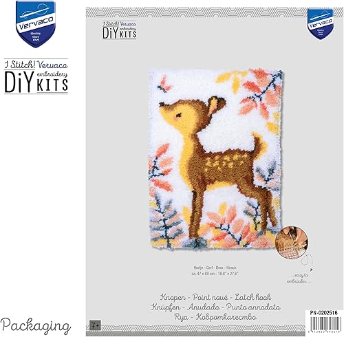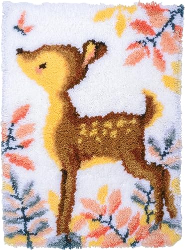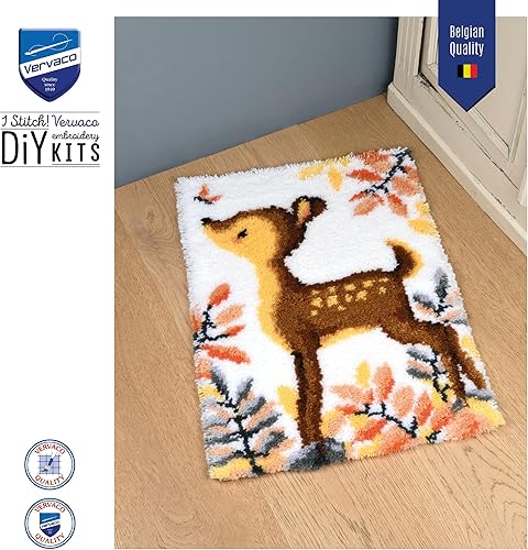 VERVACO Kit Tapis Point Noué Á Faire CERF Broderie Debutant DIY Latch Hook Kit Complet Decoration Maison Manuelle Loisir Créatif ca. 47 x 69 cm Embroidery