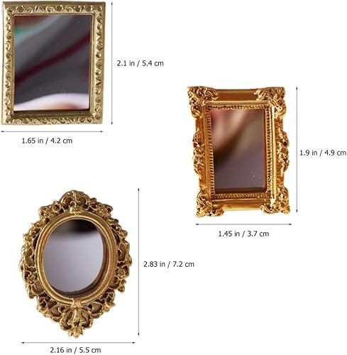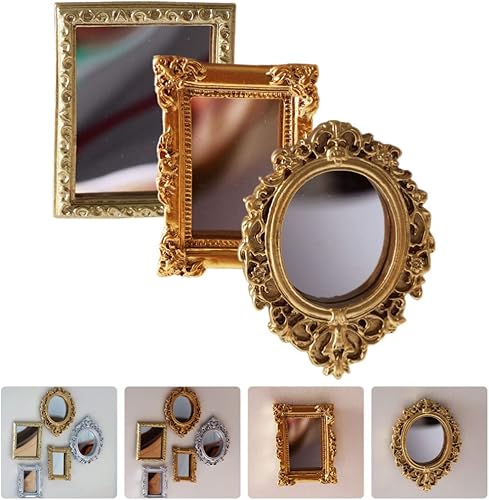NUOBESTY 3 Pièces Miroir De Maison De Miroirs Miniatures Dorés pour La Décoration De Maison De Et Accessoires Petit Miroir Mural Miroirs pour L'Artisanat Miroir Or Mini